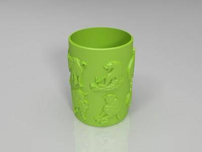 十二生肖3D打印浮雕笔筒模型
