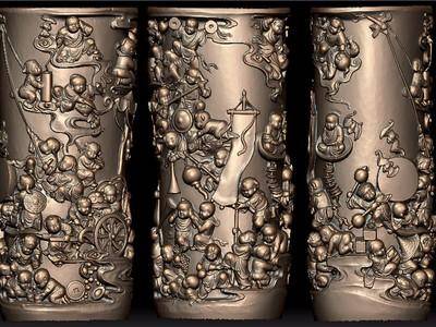 刻有100个孩子的笔筒